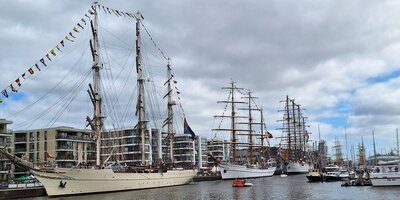 Der festliche Rahmen der traditionellen „Lampionfahrt“ bot die passende Bühne für die Ehrungen. Als Vertreter des DMYV überbrachte Matthias Albrecht (Referat Ausbildungsstätten) die Glückwünsche des Präsidiums. Im Gepäck hatte er eine Jubiläumsurkunde, ein neues Wandschild mit der Aufschrift „50 Jahre“ sowie eine „Schatzkiste“ mit Spezialitäten aus der Hamburger Speicherstadt.