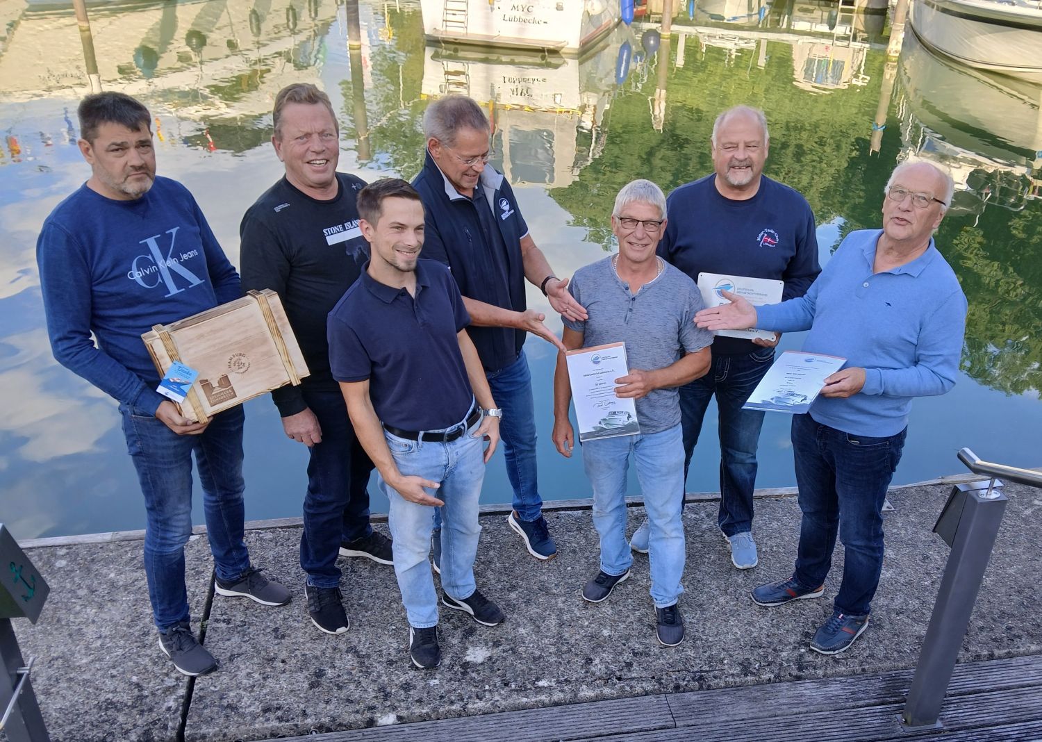 Eine besondere Würdigung erhielt zudem Willi Büscher, Ausbildungsleiter des MYC: Für sein 20-jähriges Engagement in der Ausbildung zeichnete ihn Vereinsvorsitzender Kai Uwe Stallmann im Namen des DMYV mit der Ausbildernadel aus.