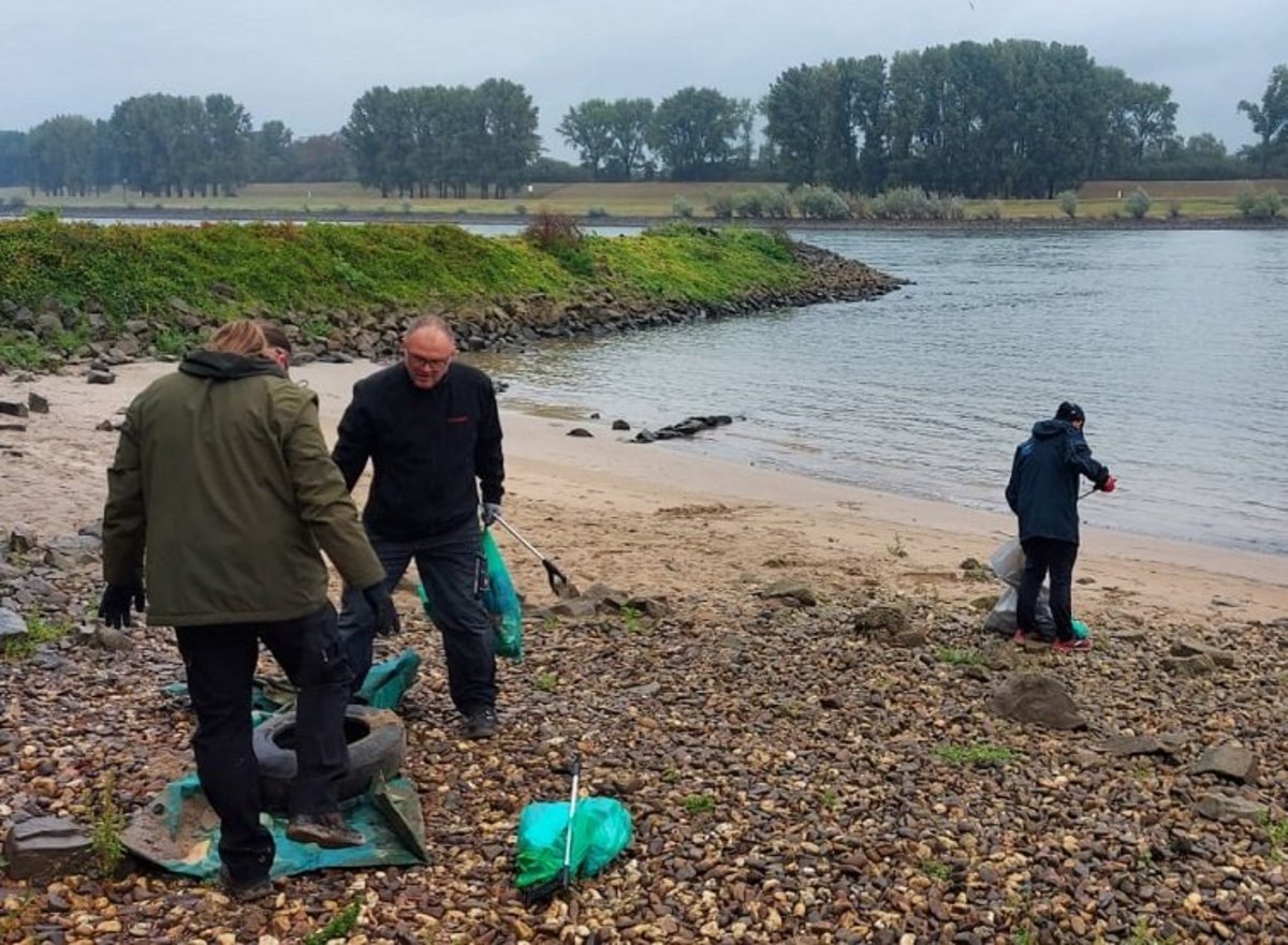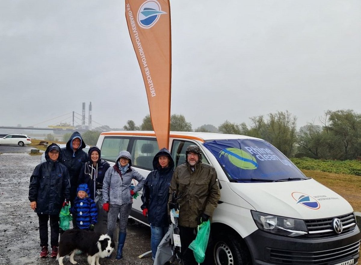 Mit Partnern, Kindern und Hundebegleitung sammelten die fleißigen Mitarbeiterinnen bei strömendem Regen viel Müll und Unrat ein, der sich am Rheinufer bei Duisburg angesammelt hat. Mit Sitz im Duisburger Hafen und als Wassersportverband war es für die Kolleginnen der Geschäftsstelle eine Ehrensache „vor der Haustüre“ des Verbandes einmal beim Aufräumen zu helfen.
