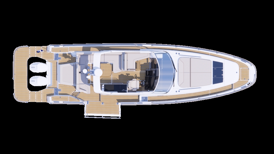 | Tender 12 (T12) | Neues breiteres/längeres T-Top mit Solarpanels und Acrylglas; neuer Seitenbalkon Steuerbord; neue Motoroption 2× Mercury V10 425 PS |