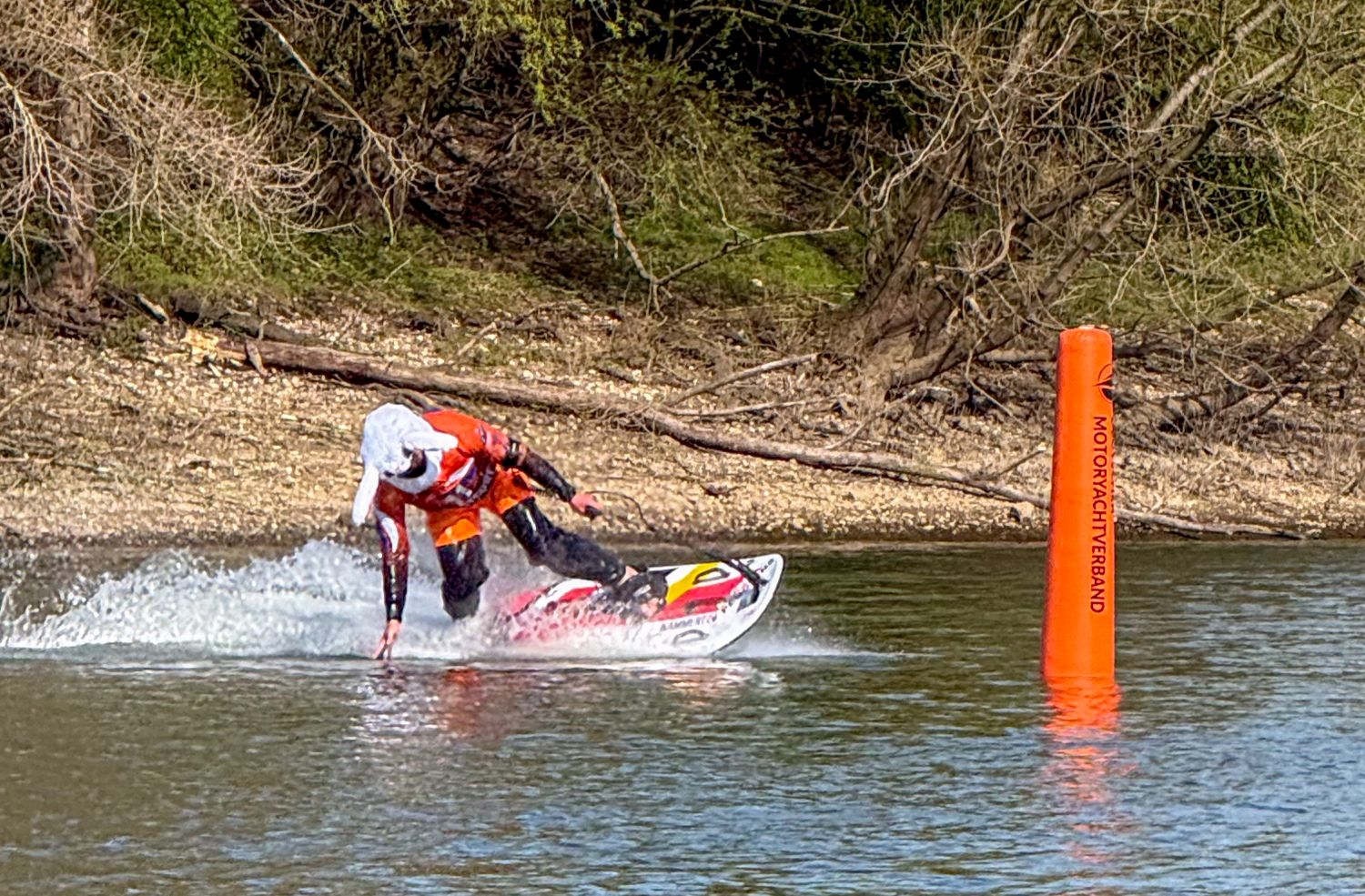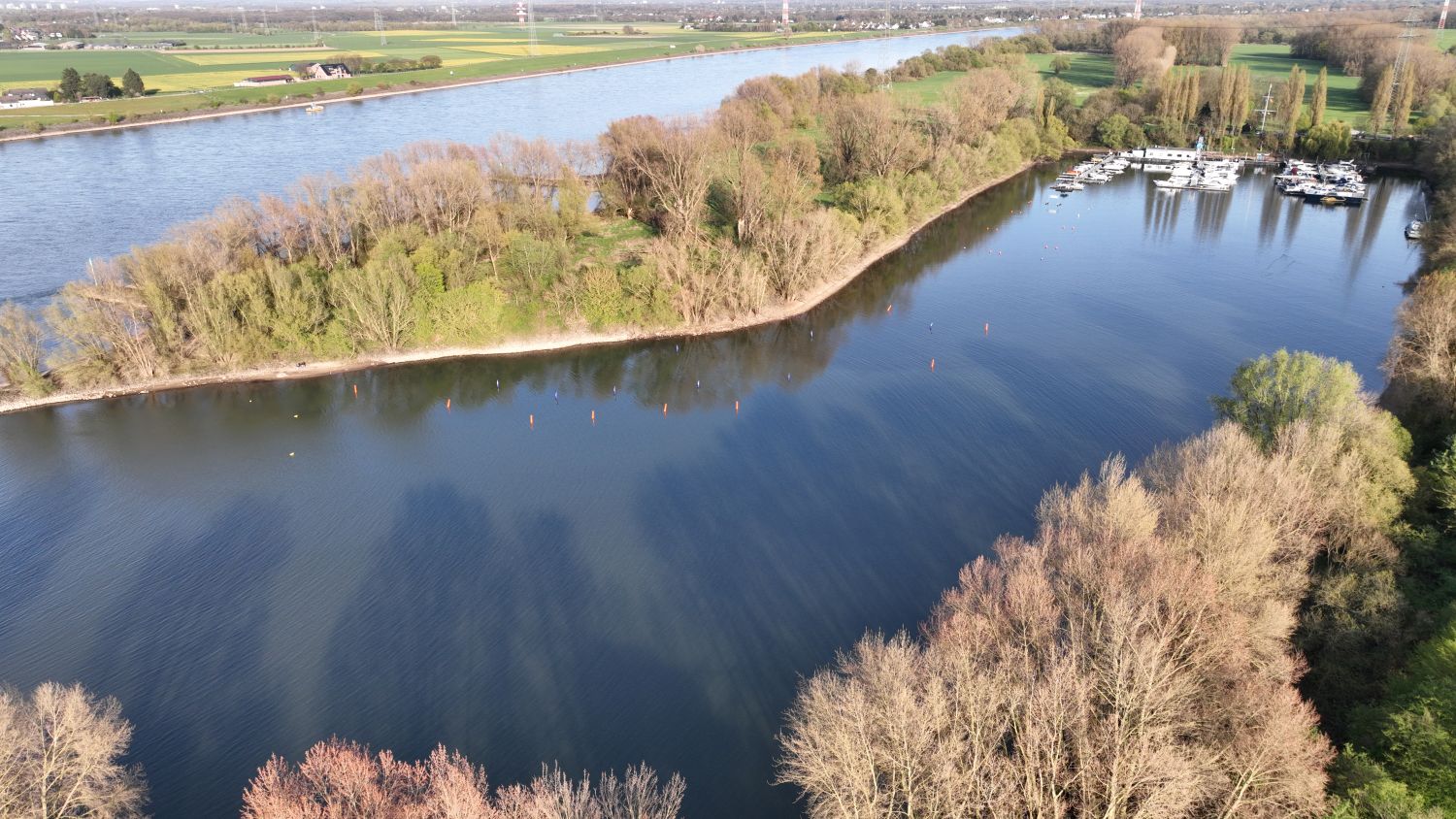 Mit tatkräftiger Unterstützung des Crefelder Yacht Clubs (CYC) sowie des MotoSurf Club Germany (MSCG) wurde der anspruchsvolle Parcours in Sichtweite der Hafenanlage professionell eingerichtet. Mithilfe eines Arbeitsbootes und eines Pontons konnten die rund 1,6 Meter hohen Bojen präzise in dem vor Strom und Wind geschützten kurzen Seitenarm bei Rhein-Kilometer 761,8 ausgelegt werden.