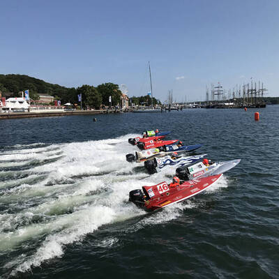 Der Jugendwettbewerb „Großer Preis von Leer“, der unter Federführung des Motoryacht-Verband Schleswig-Holstein e.V. durchgeführt wurde, erfreute sich bei Zuschauer/innen und Teilnehmer/innen großer Beliebtheit. Gleich 14 Kinder und Jugendliche, die teilweise ohne jegliche Schlauchbooterfahrung bei der Aktion „Kids, kommt ins Boot“ am Donnerstag teilgenommen hatten, starteten auch im Wettbewerb. In den Schlauchbooten dominierten jedoch die Profis, die auch in höheren Klassen auf den Rennpisten unterwegs sind, das Teilnehmerfeld. Leroy Lösch fuhr vor André Zeipelt und Laura Morgenstern auf den ersten Platz. In der Klasse GT-6 siegte Ben-Louis Leitzke knapp vor Leonard Tietz und Sebastian Schrader. Dabei war allen teilnehmenden Kindern und Jugendlichen der Spaß am Motorbootsport anzusehen.